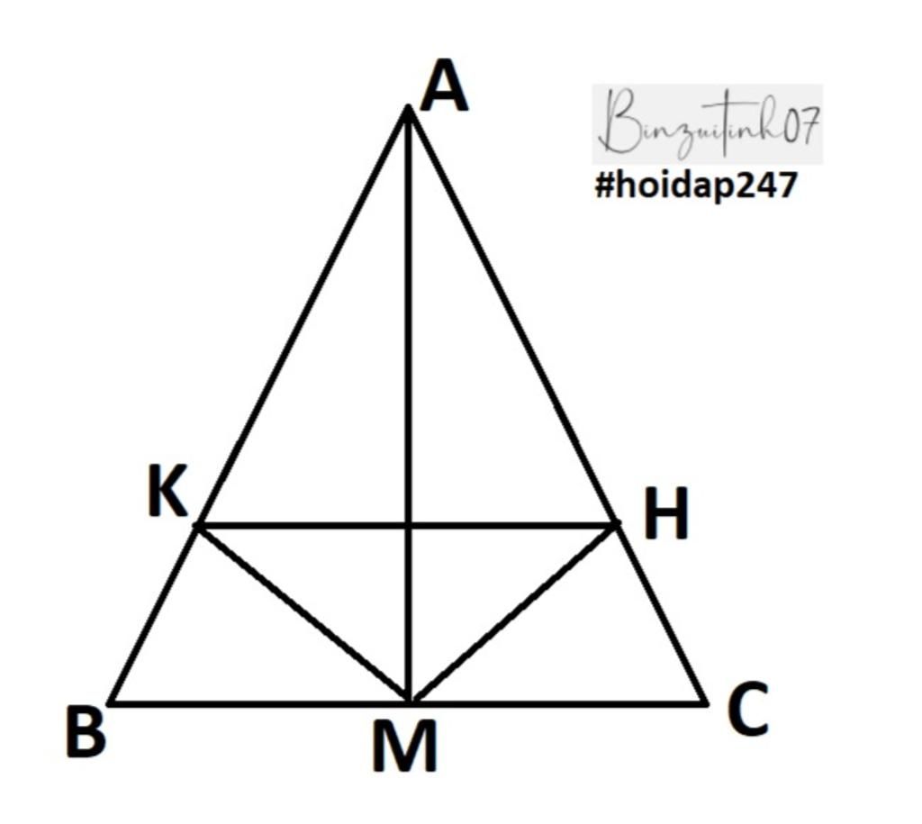 Có `AM` là trung trực của `HK` và `BC` $_{(cmt)}$