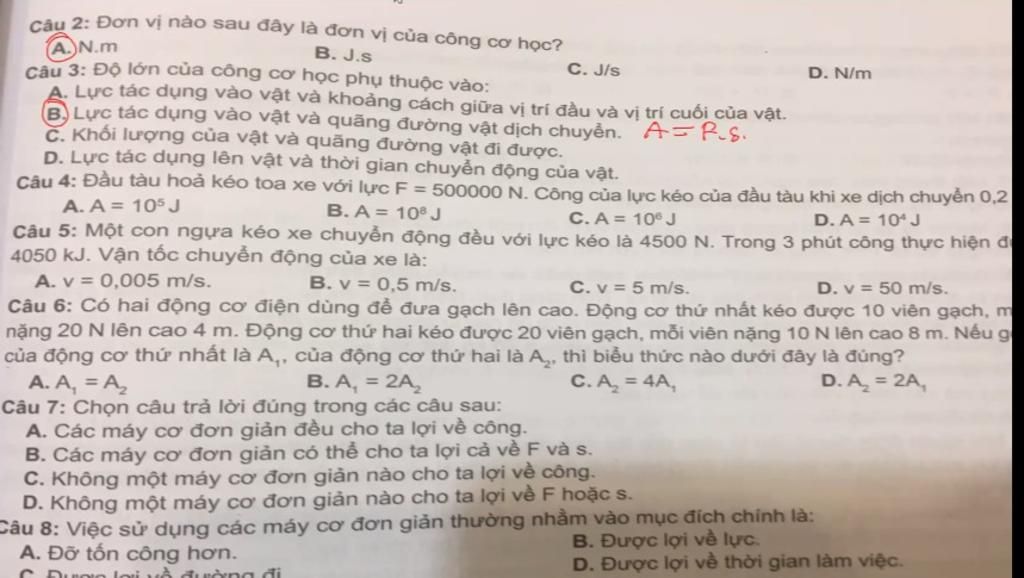 Câu 2: Đơn vị nào sau đây là đơn vị của công cơ học?