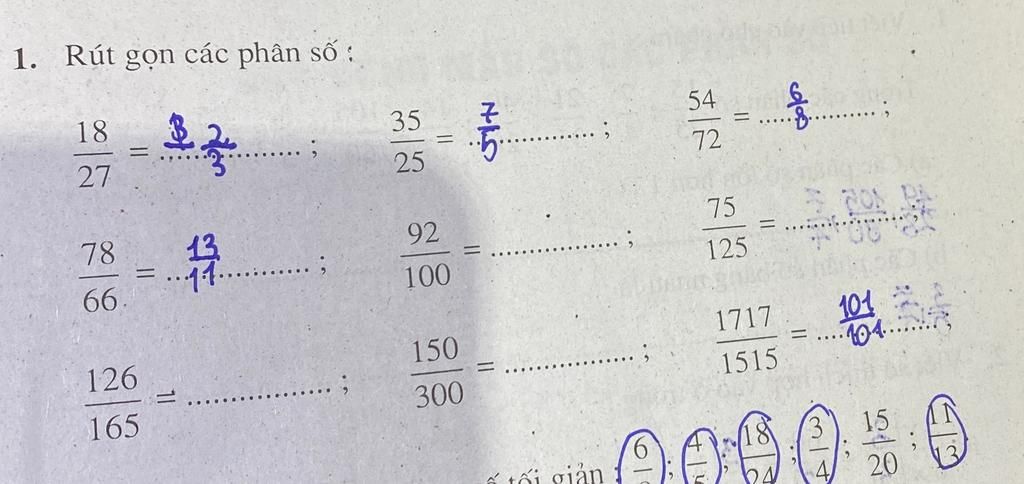 $\dfrac{54}{72}$ = $\dfrac{54 : 18}{72 : 18}$ = $\dfrac{3}{4}$