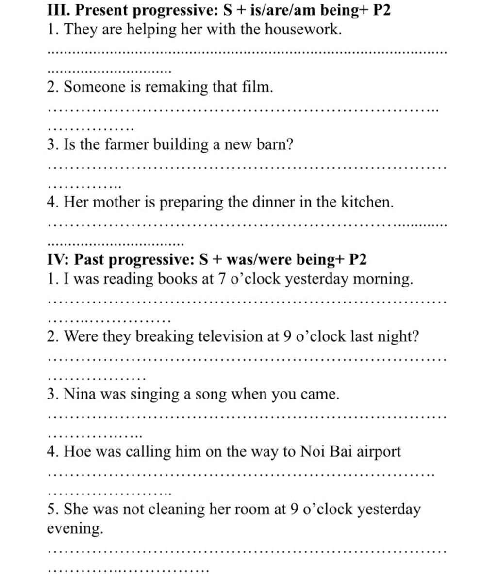 1.Books were being read by me at 7 o’clock yesterday morning.