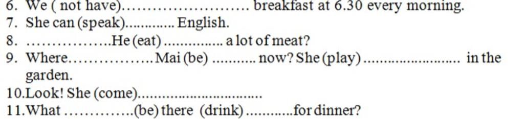 9. Where ....... Mai ( be) now ? She (play) ...... in the garden