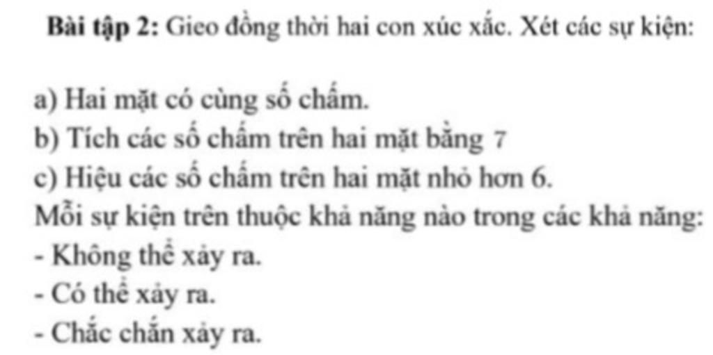 a) Hai mặt có cùng số chấm: có thể xảy ra