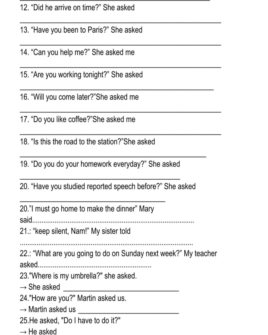 22. My teacher asked me what I was going to do on Sunday the following week.
