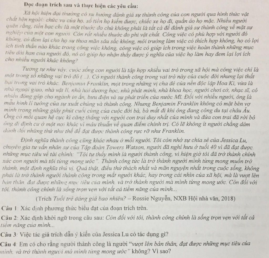 Câu $3$ : Việc tác giả trích ra ý kiến của Jessica Lu nhằm mục đích :
