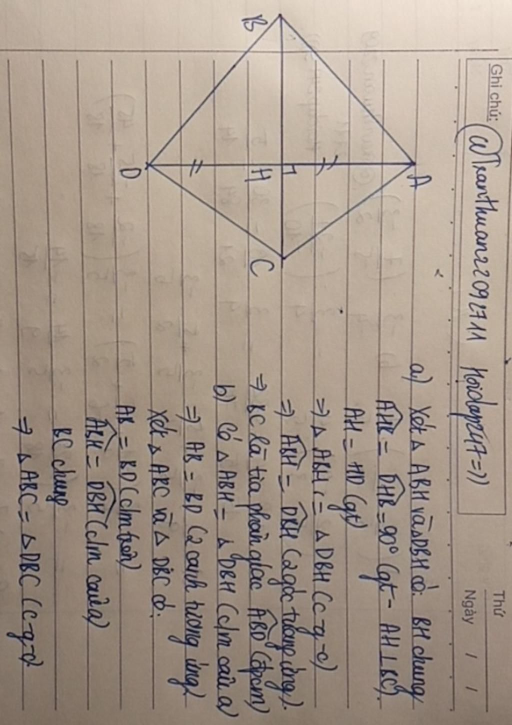 Xét `\DeltaABH` và `\DeltaDBH` có: