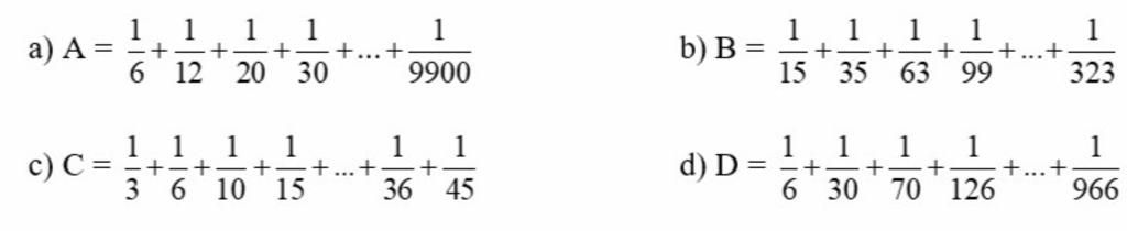 `A = 1/(2 . 3) + 1/(3 . 4) + 1/(4 . 5) + 1/(5 . 6) + ... + 1/(99 . 100)`