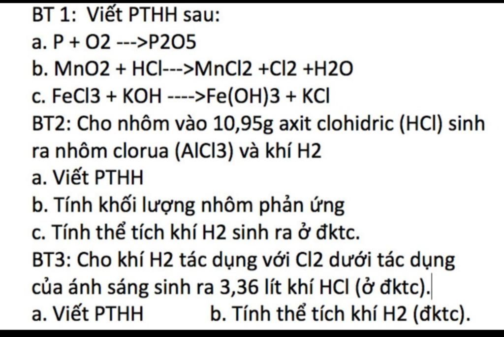 `b. MnO_2 + 4HCl` $\xrightarrow{\text{đun nhẹ}}$ `MnCl_2 + Cl_2↑ + 2H_2 O`