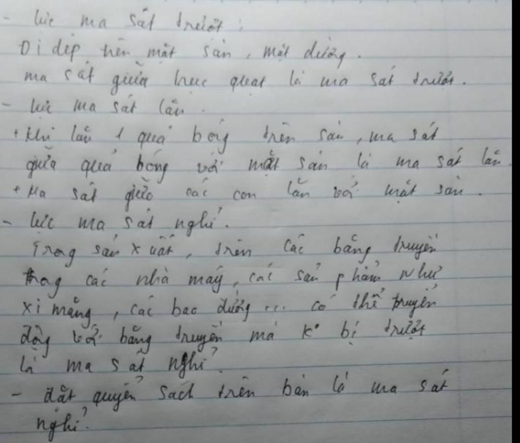 - Khi lăn một thùng phuy trên mặt sàn, lực ma sát giữa vỏ thùng phuy với mặt sàn là lực ma sát lăn.