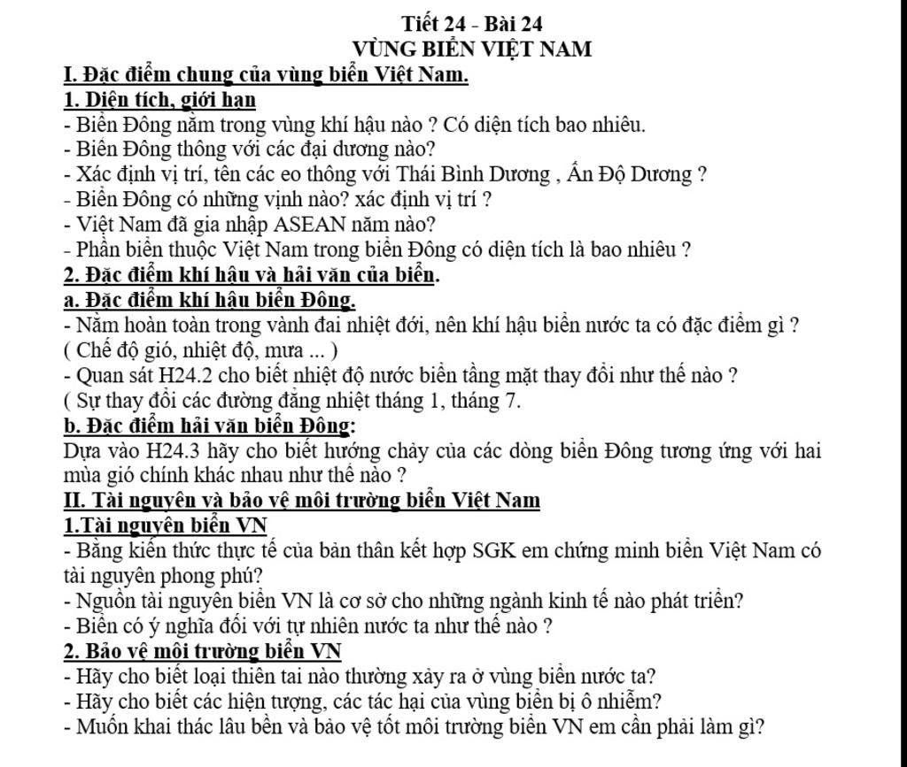 I. Đặc điểm chung của vùng biễn Việt Nam.