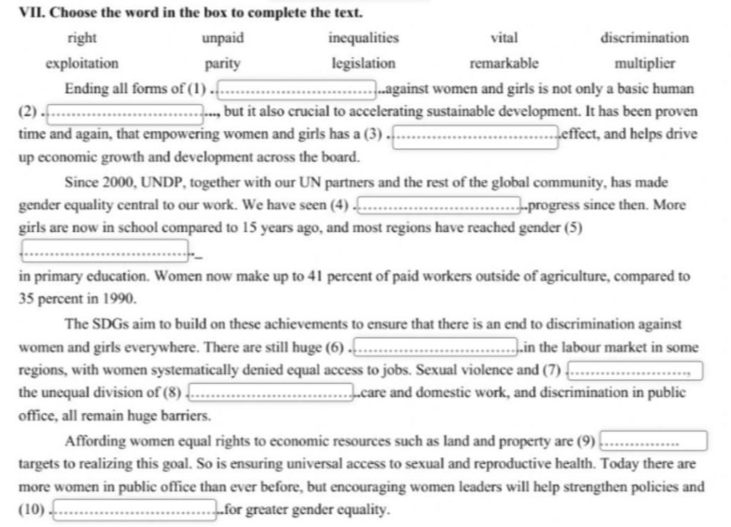 Kể từ năm 2000, UNDP, cùng với các đối tác của Liên hợp quốc và phần còn lại của cộng đồng toàn cầu, đã coi bình đẳng giới là trọng tâm trong công việc của chúng tôi. Chúng tôi đã thấy sự tiến bộ rõ rệt kể từ đó. Nhiều trẻ em gái hiện nay được đến trường hơn so với 15 năm trước, và hầu hết các vùng đã đạt được bình đẳng giới trong giáo dục tiểu học. Phụ nữ hiện chiếm tới 41% lao động được trả lương bên ngoài nông nghiệp, so với 35% vào năm 1990.