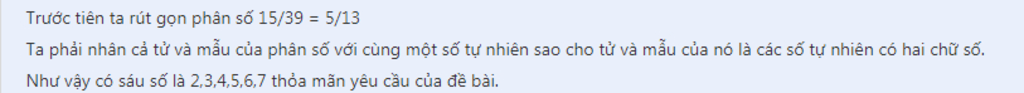 Trước tiên ta rút gọn phân số 15/39 = 5/13