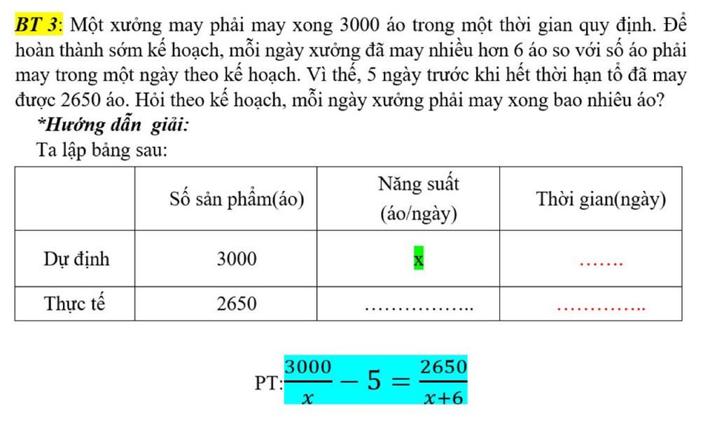 Vậy số sản phẩm mỗi ngày sản xuất theo kế hoạch là $x = 100$ (sản phẩm)