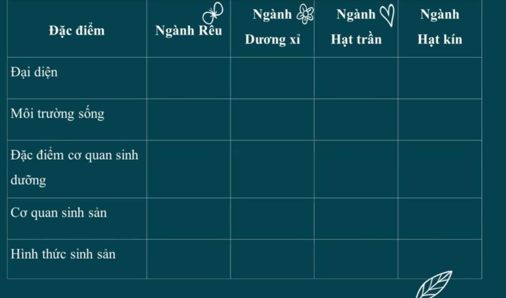 Ngành Dương xỉ: sống ở những nơi đất ẩm, chân tường, dưới tán cây trong rừng.