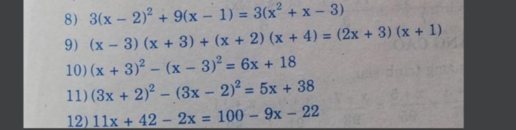 `8)` `3(x-2)^2 + 9(x-1)=3(x^2 + x-3)`