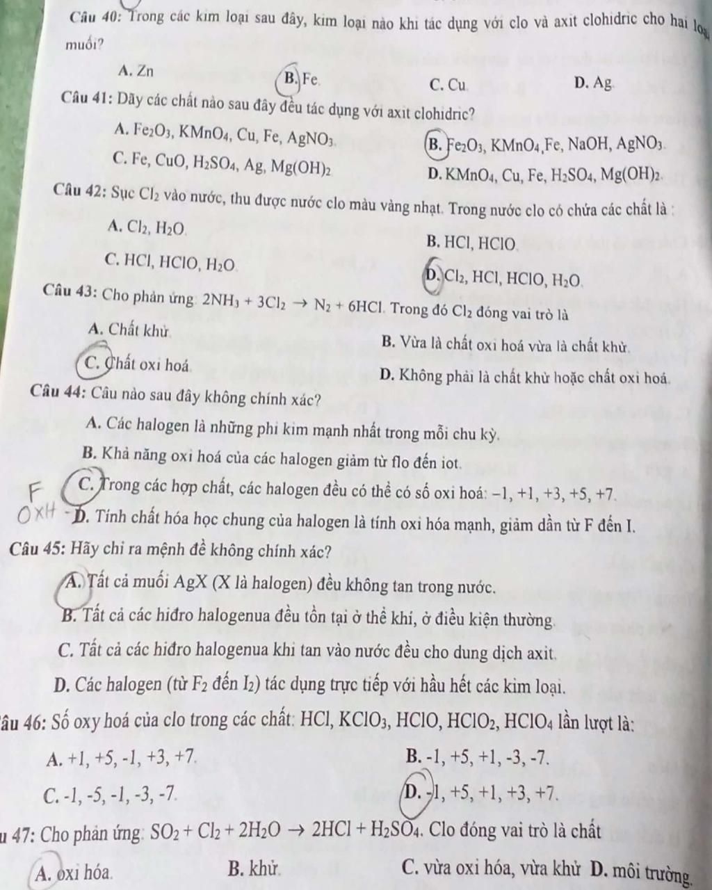 44, Flo chỉ có số oxi hóa -1 nên đáp án C sai