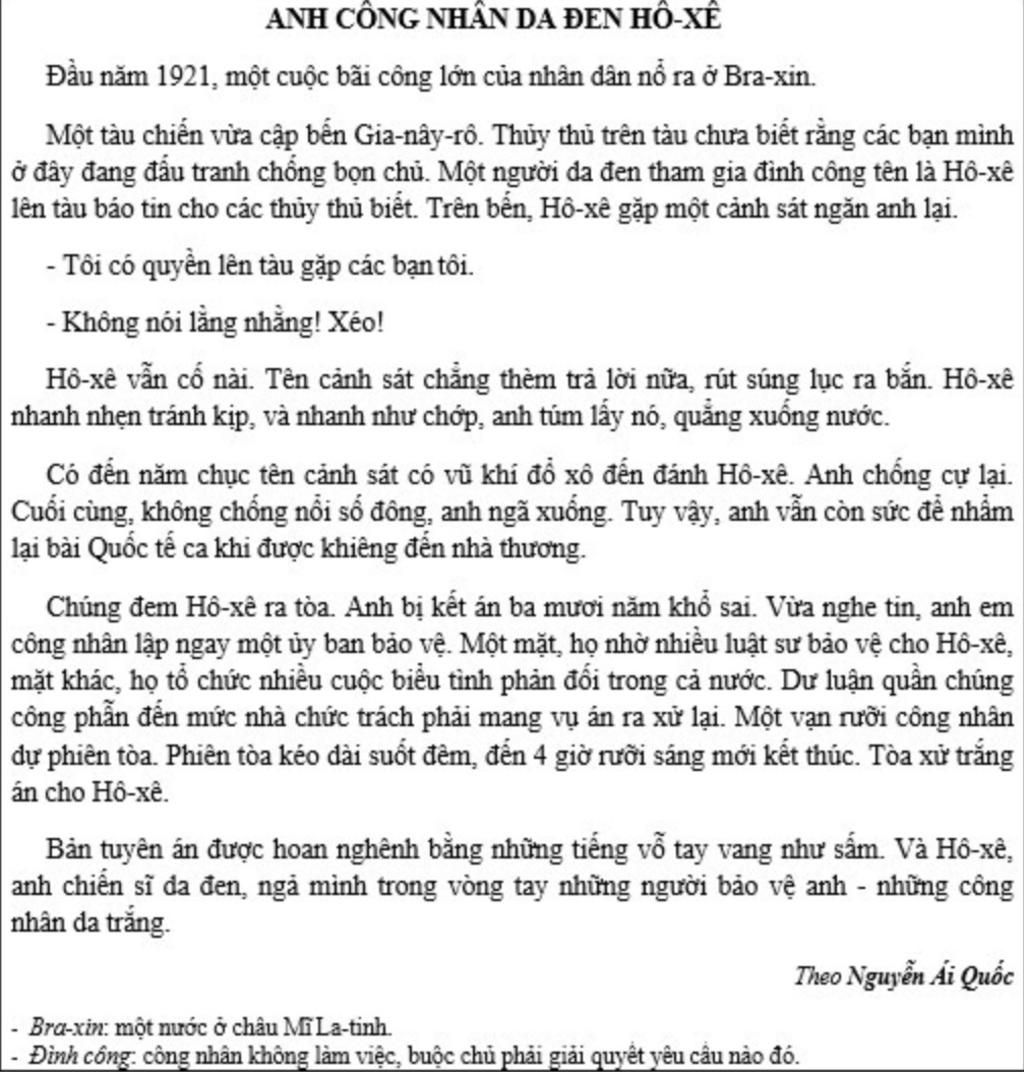 2. Thủy thủ trên tàu chưa biết rằng các bạn mình ở đây đang đấu tranh chống bọn chủ nên một người da đen tham gia đình công tên là Hô-xê muốn lên tàu báo tin cho các thủy thủ biết.