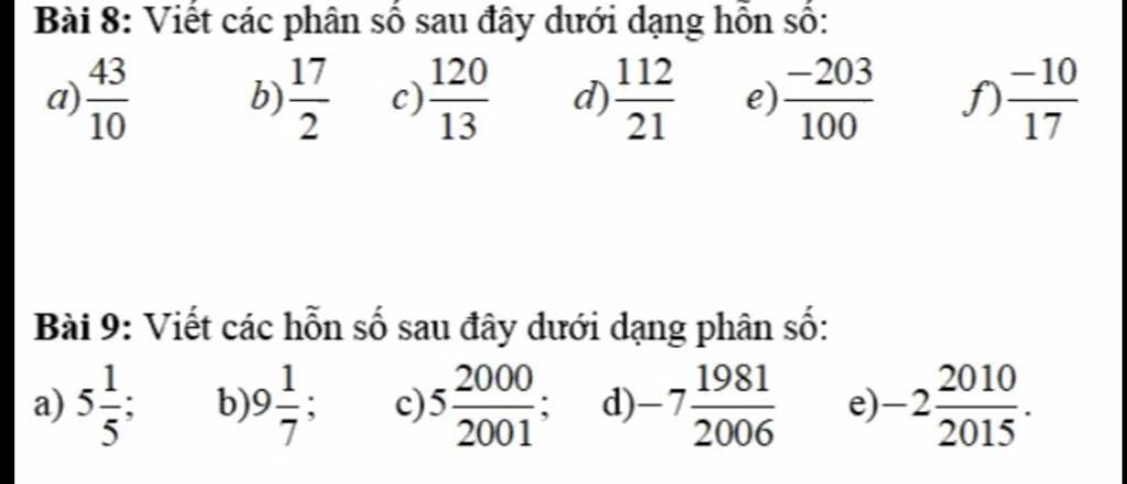 e) -2$\frac{2010}{2015}$ = $\frac{-2.2015+2010}{2015}$ = $\frac{-2020}{2015}$