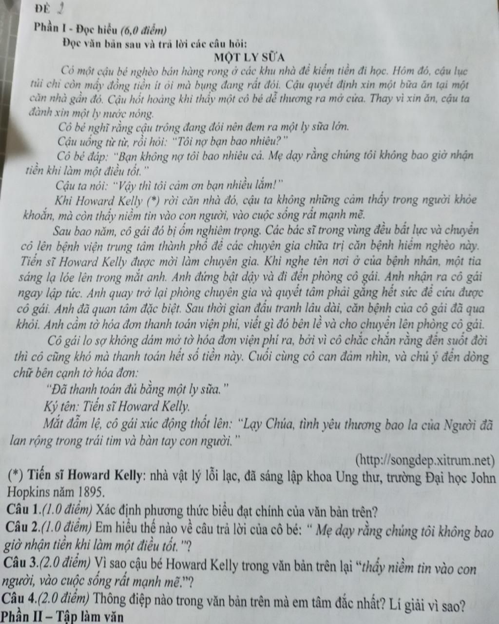 4.Thông điệp mà em tâm đắc nhất đó chính là từ câu nói của cô bé khi giúp đỡ Howard Kelly,đó là một thông điệp đầy ý nghĩa và nhân văn,và cũng phần nào chứng minh được tầm quan trọng của việc giáo dục và dạy dỗ một con người là to lớn như thế nào.