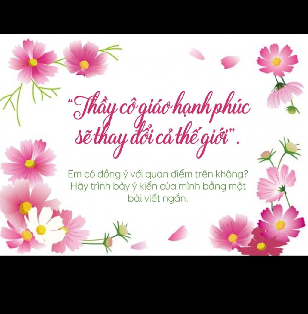 2. Thiền sư Thích Nhất Hạnh là một nhà văn, nhà thơ, nhà giáo và cũng là người hoạt động tích cực cho xã hội. Hơn ai hết ông hiểu rõ vai trò to lớn của những người làm nghề giáo mà nói rằng: Thầy cô hạnh phúc sẽ thay đổi cả thế giới. Câu nói trên - đúc rút từ cả cuộc đời tâm huyết với giáo dục của ông - đã khẳng định tầm quan trọng của những người mang trên vai sứ mệnh "trồng người" đối với tương lai của con trẻ- cũng chính là tương lai của xã hội.