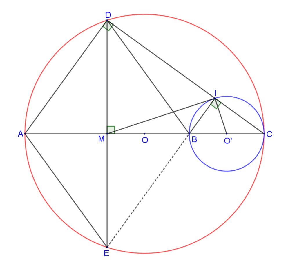 Nên $M$ là trung điểm của $DE$ (quan hệ đường kính – dây cung)