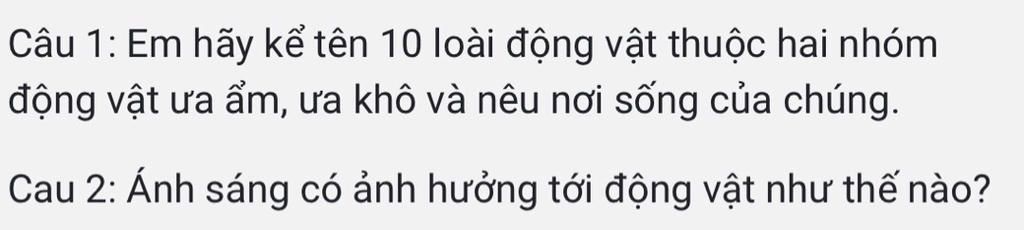 10 loài động vật thuộc 2 nhóm ưa ẩm và ưa khô: