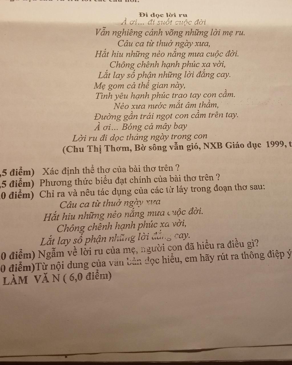 Mẹ đối em quả thực là một người phụ nữ vĩ đại. Cũng giống như trong bài thơ, mẹ em thường răn dạy,nuôi lớn không chỉ từ những bữa cơm ăn, áo mặc mà ở trong cả những lời ru. Lời ru mẹ dịu hiền, chất chứa những hình ảnh gần gũi, giản dị nơi làng quê. Dường như trong lời ru của mẹ em có thể cảm nhận được làn nước mát từ dòng sông quê, không khí trong lành ngày sớm, và cả màu nắng trên những cánh đồng... Lời ru mẹ đong đưa trên cánh võng cũng như mang theo cả tâm tư của mẹ gửi vào đó, mẹ thương em, mẹ đem cả hạnh phúc của mẹ trao trên bàn tay bé nhỏ của những đứa con, mẹ lặng cầm những giọt mồ hôi, nước mắt để cho em một cuộc sống no đủ nhất. Mẹ ơi sao mẹ cao cả thế, trái tim như biển cả bao bọc lấy đứa con thơ. Đi suốt cả chặng đường những lời dạy, những lời ru và cả hình bóng mẹ sẽ luôn theo con, nâng bước con trên con đường đời đầy gian truân.Cảm ơn mẹ, lời ru ấm tình người của mẹ.