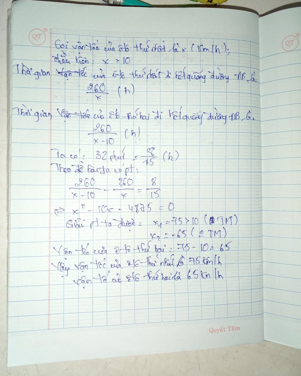 Vậy vận tốc mỗi người là `72,1` km/h và `62,1` km/h