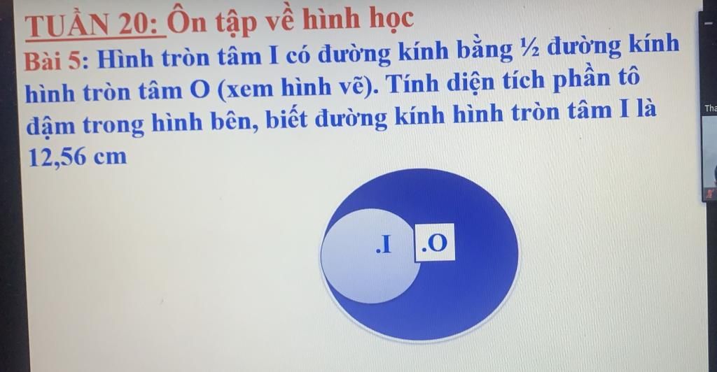 -S hình tròn tâm I là: (12,56 : 2)x 3,14=19,7192(cm²)