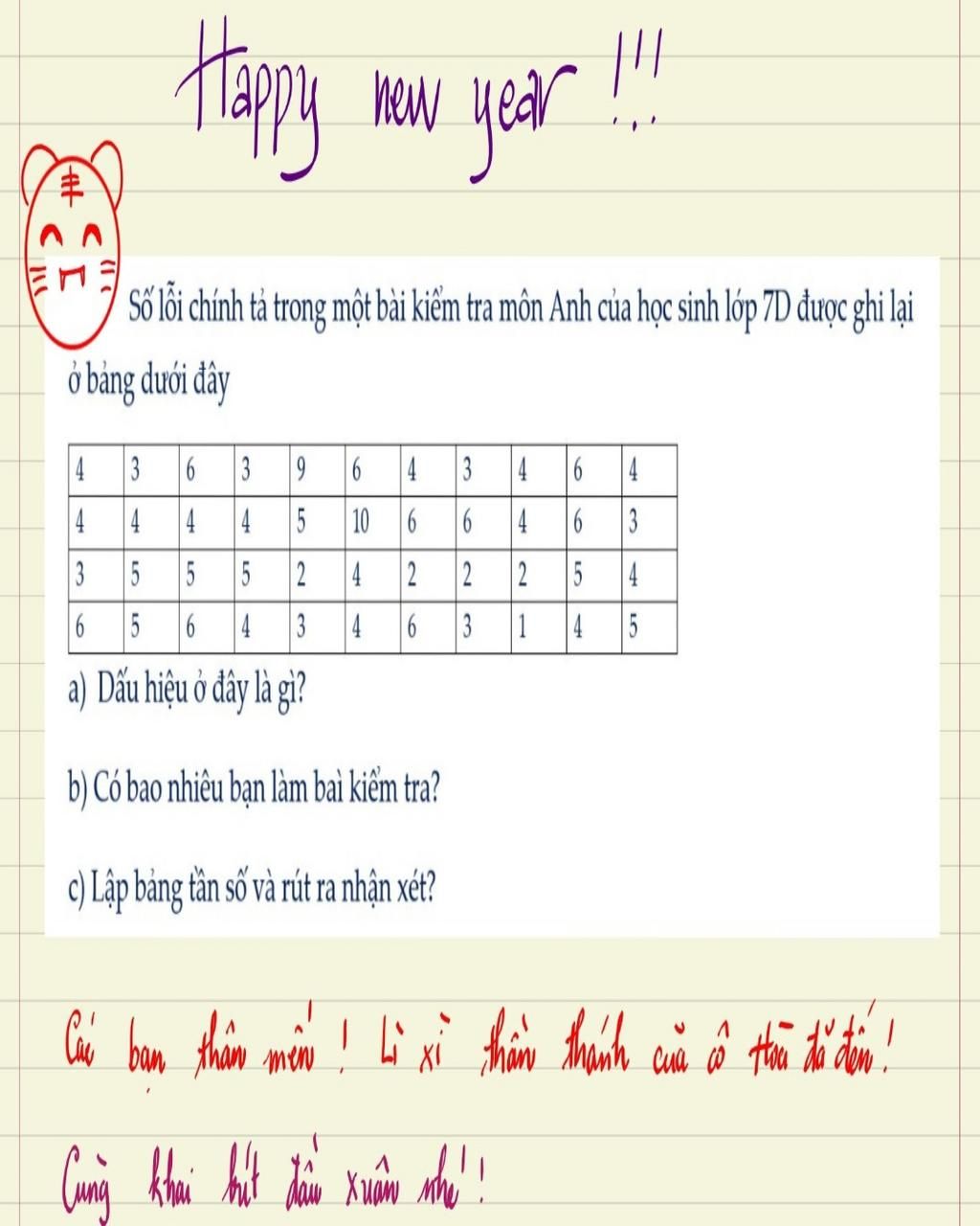 a) Dấu hiệu:số lỗi chính tả trong bài kiểm tra môn Anh của học sinh lớp 7D