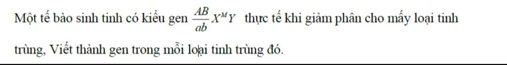 `⇒` Tạo ra `2` loại tinh trùng là `\underline{AB}Y` và `\underline{ab}X^m`