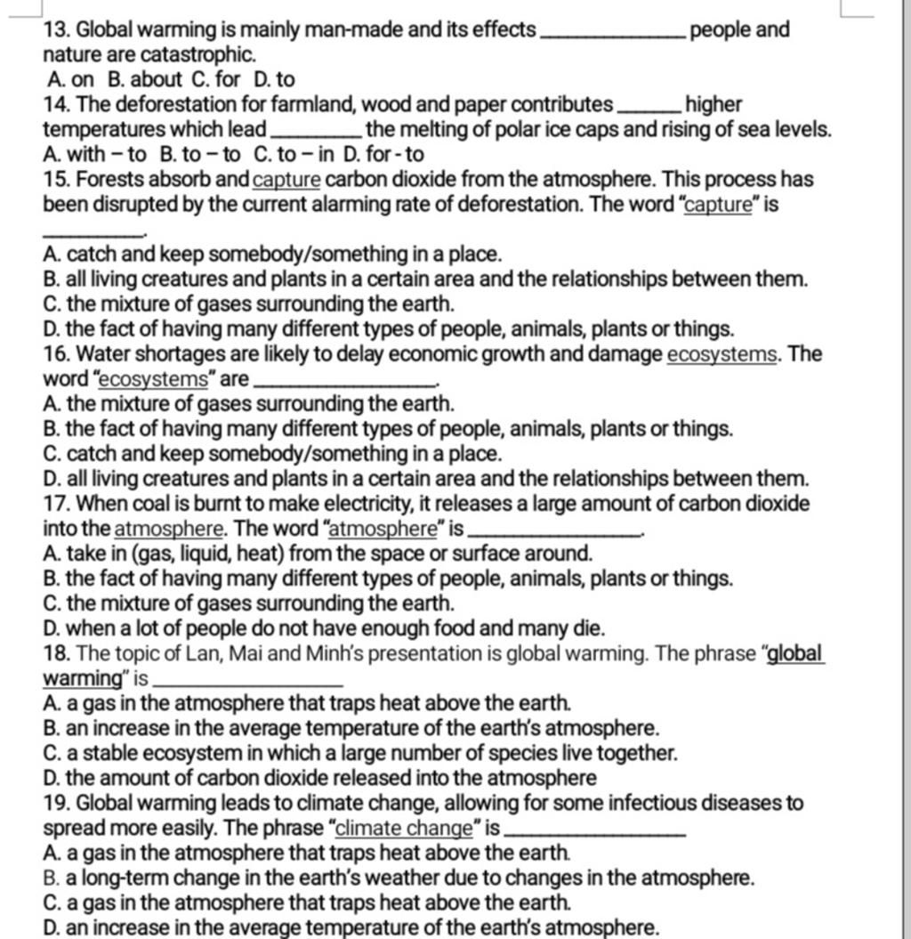19-B(climate change /ˈklaɪ.mət ˌtʃeɪndʒ/ (n): biến đổi khí hậu)