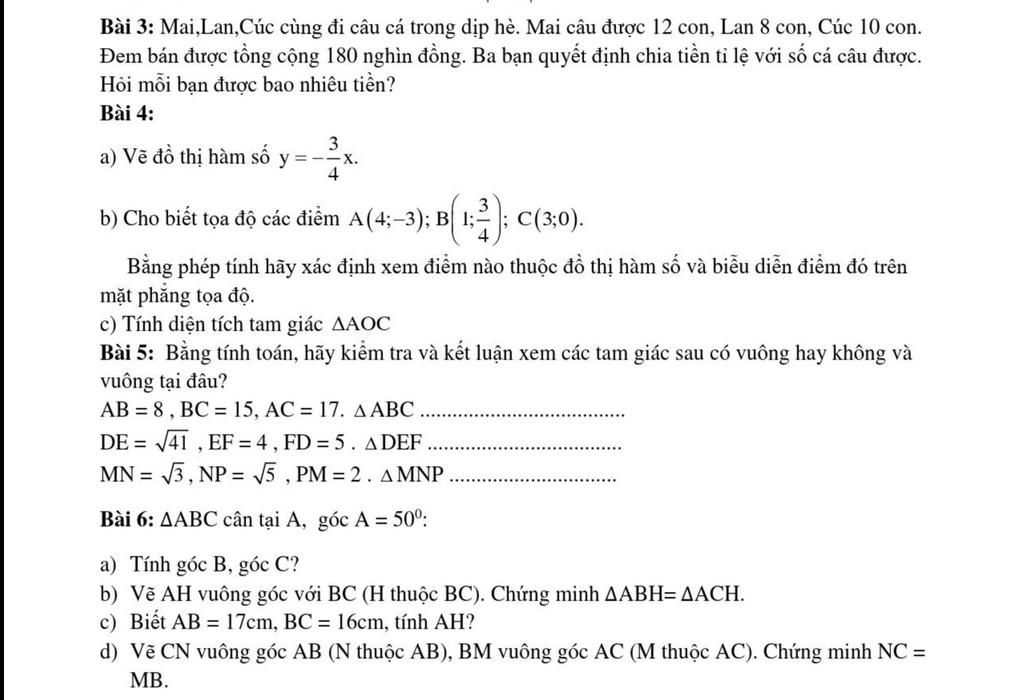 Gọi x, y, z lần lượt là số tiền bán cá 3 bạn Mai, Lan, Cúc (nghìn đồng ; x,y,z > 0)