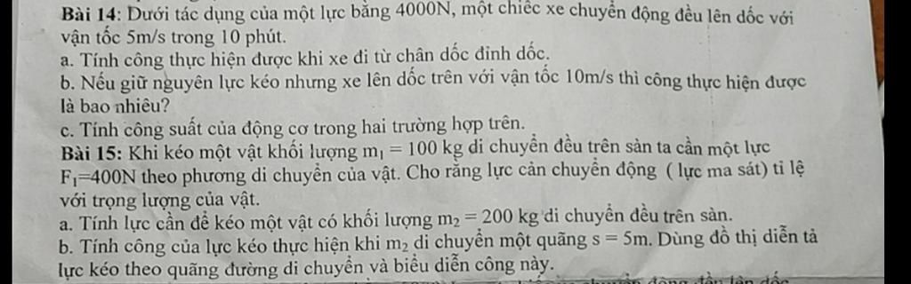 Công thực hiện được khi xe đi từ chân dốc đến đỉnh dốc vs v= 10m/s: