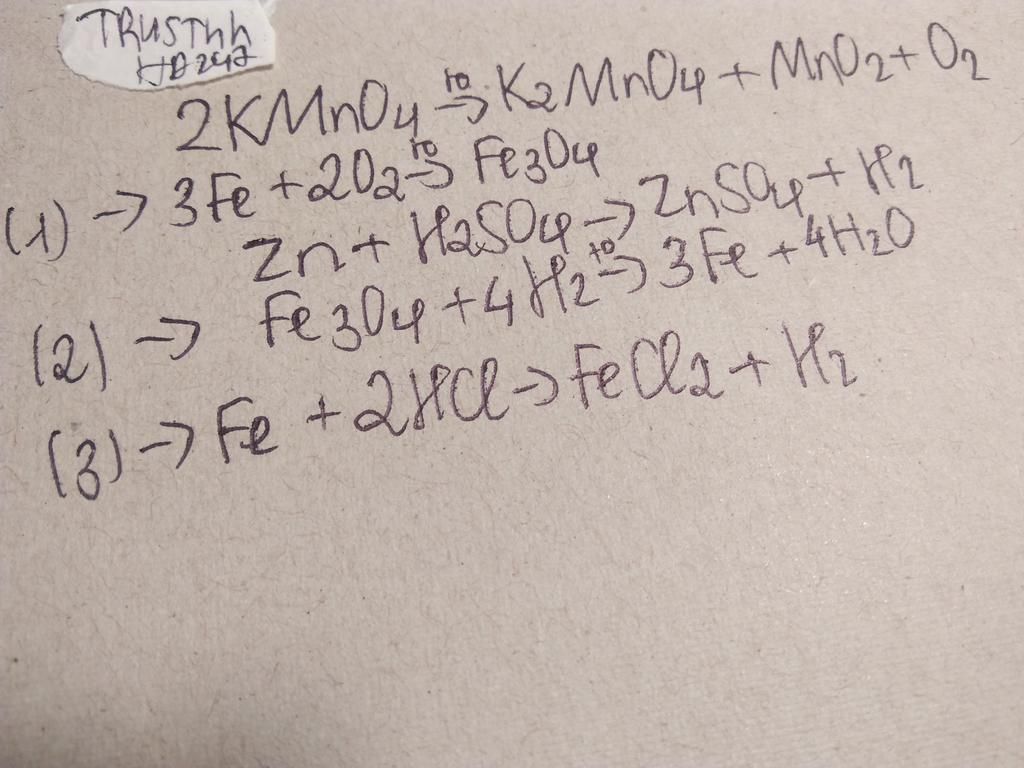 $3Fe+2O_2\xrightarrow{t^o}Fe_3O_4$