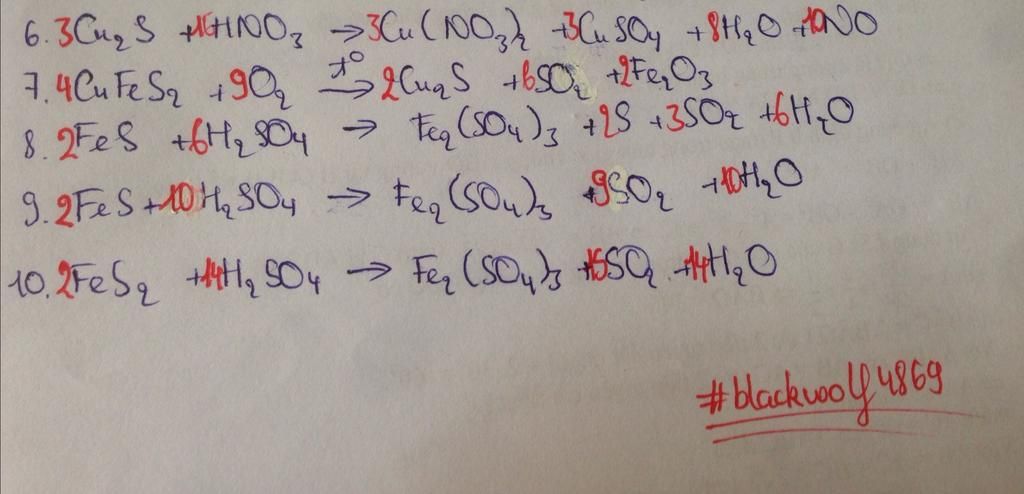 `6)3Cu_2S + 16HNO_3 -> 10NO + 3Cu(NO_3)_2 + 3CuSO_4 + 8H_2O`