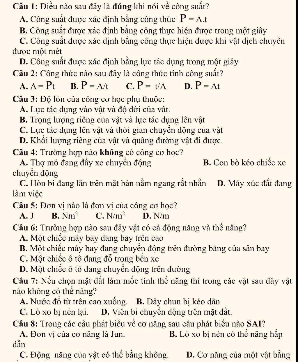 1, B.công suất được xác định bằng công thực hiện trong một đơn vị thời gian.