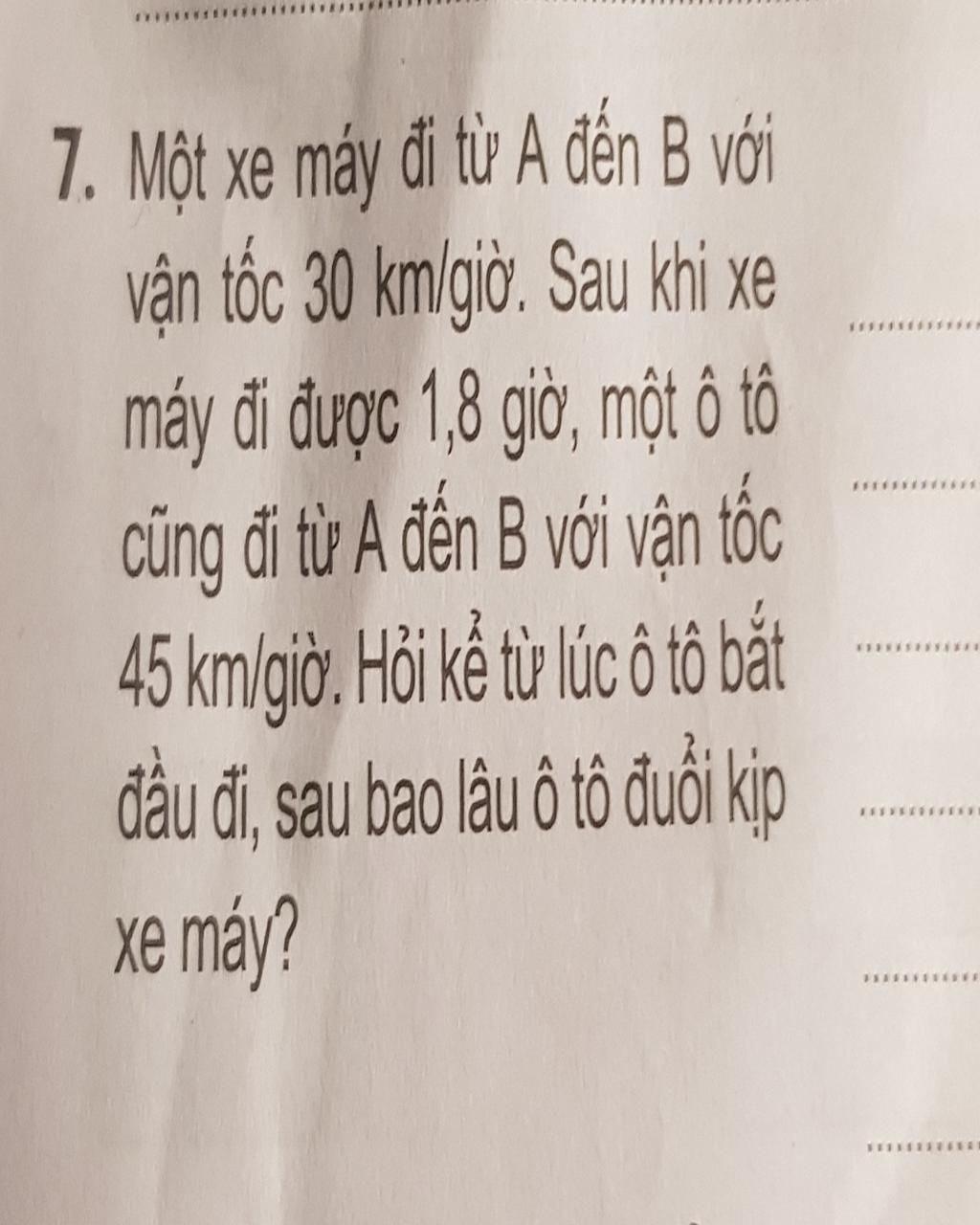Vận tốc của ô tô hơn vận tốc của xe máy là :