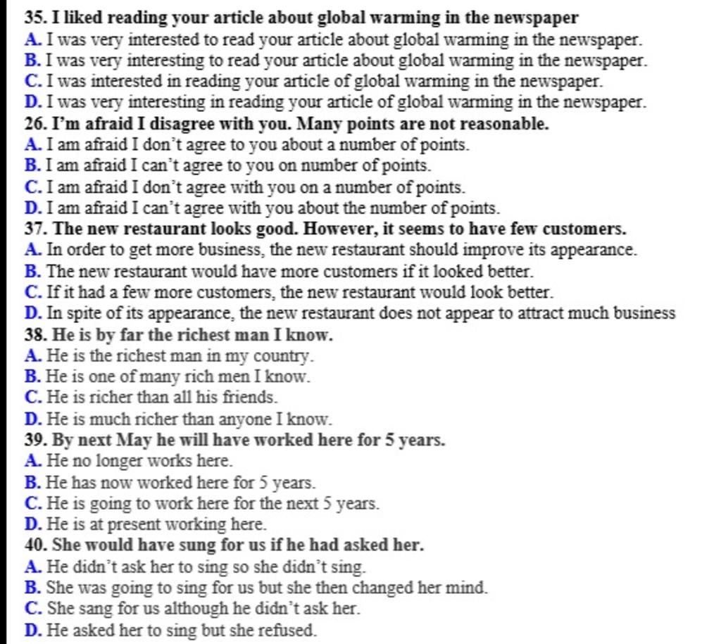 35. I liked reading your article about global warming in the newspaper