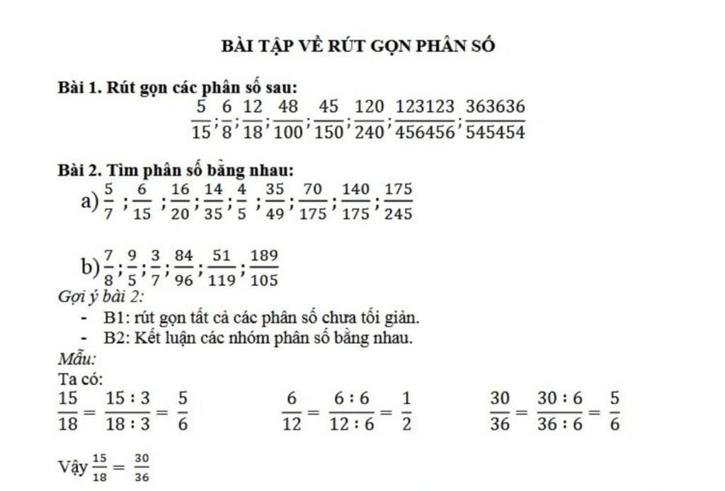 BÀI TẬP VỀ RÚT GỌN PHÂN SÓ