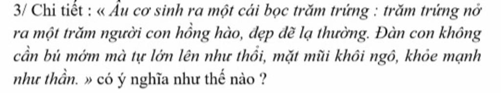 ⇒ Nói về côi nguồn của dân tộc người Việt ta và nói về cội nguồn của chúng ta. Những người toan sinh ra từ bọc trứng, sau àny sẽ lớn lên, lấy vợ, đẻ con và sẽ là tổ tiên, nguồn gốc của đời sống chúng ta.