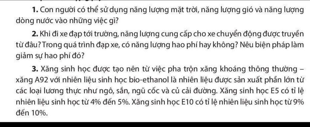 `-` Khi đi xe đạp tới trường năng lượng cung cấp cho xe chuyển động được truyền từ người sang xe đạp