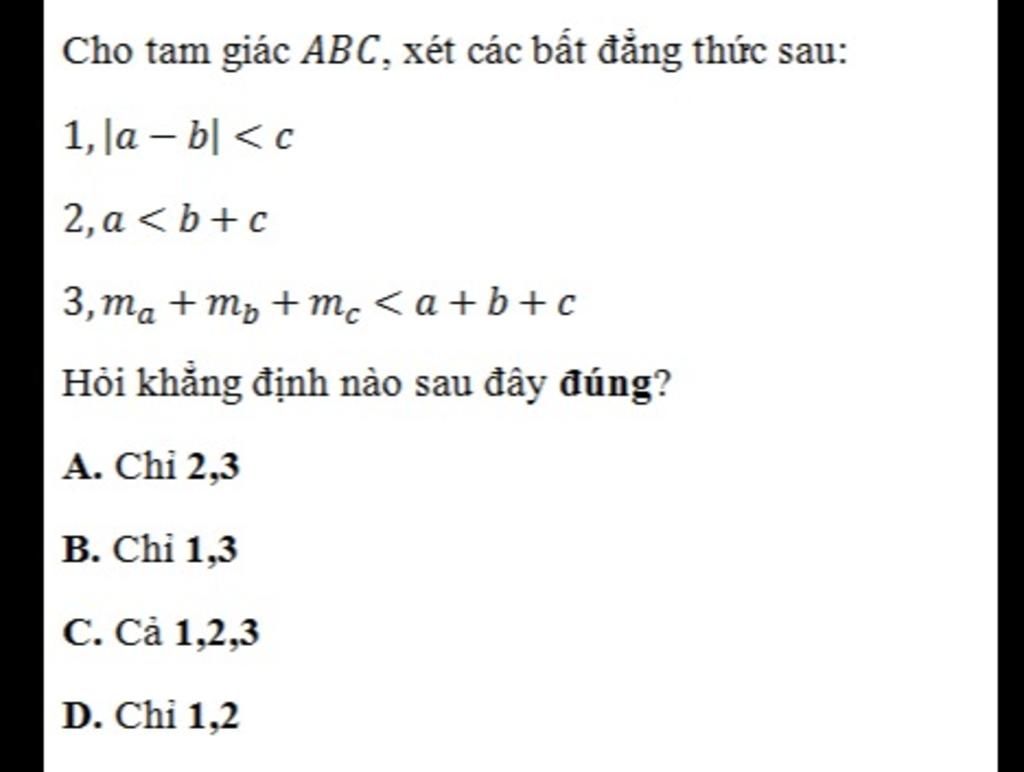 $\to |a-b|<c$ và $a<b+c$ (bất đẳng thức tam giác)