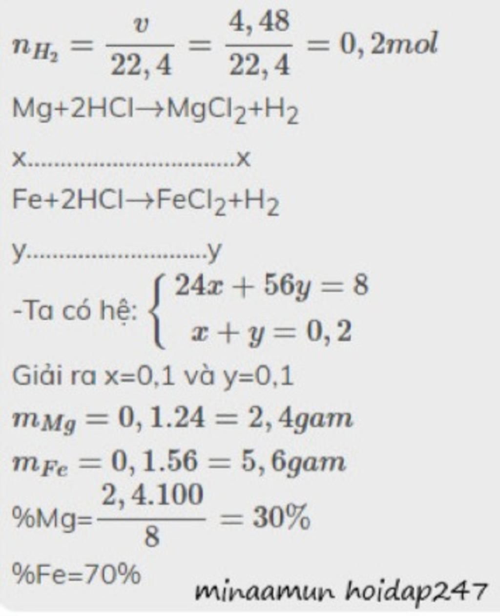 Đặt $n_{Mg}=x(mol);n_{Fe}=y(mol)$