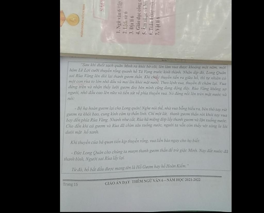 Câu 1: Long Quân sai rùa vàng đòi lại gươm thần vào thời điểm sau khi đuổi sạch quân Minh ra khỏi bờ cõi, Lê Lợi lên làm vua được 1 năm.