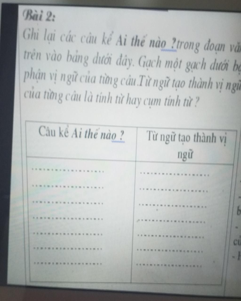 Các câu kể ai thế nào trong đoạn văn và phân tích chủ ngữ vị ngữ đó ah!