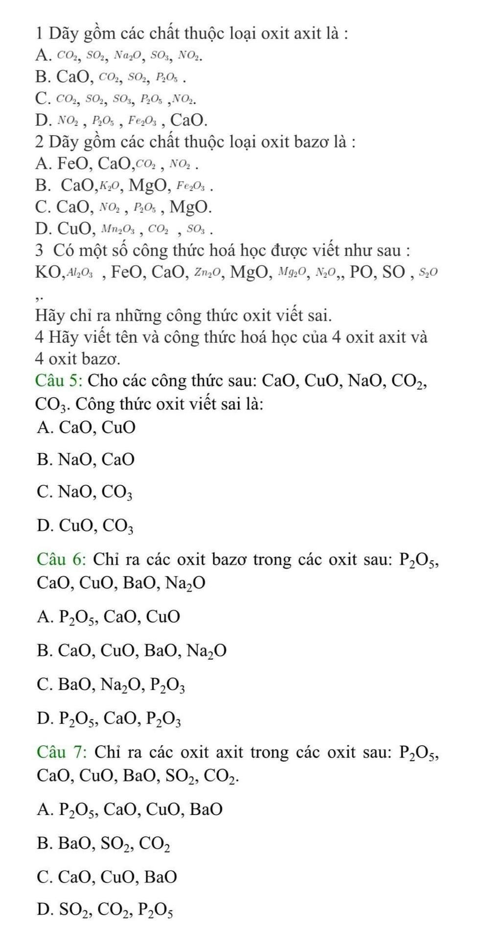 4. CTHH oxit axit:P2O5,SO2,SO3,CO2