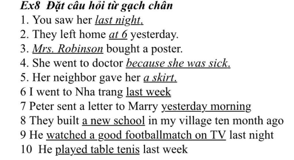 `\rightarrow` Thì QKĐ ( CNV ) : Did + S + V ?