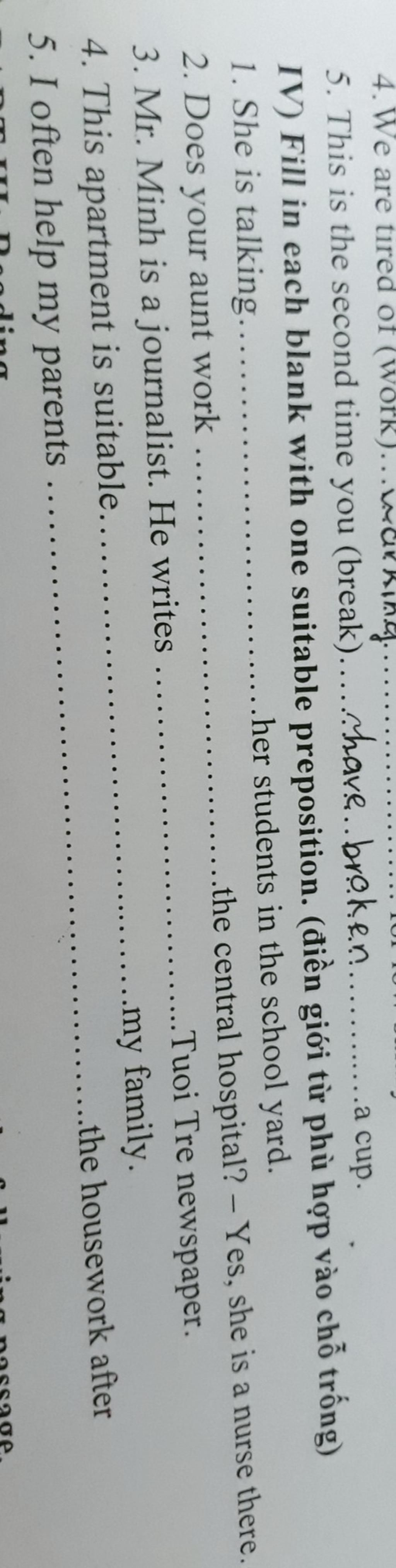 4. Mr. Minh is a journalist. He writes for Tuoi Tre newspaper.