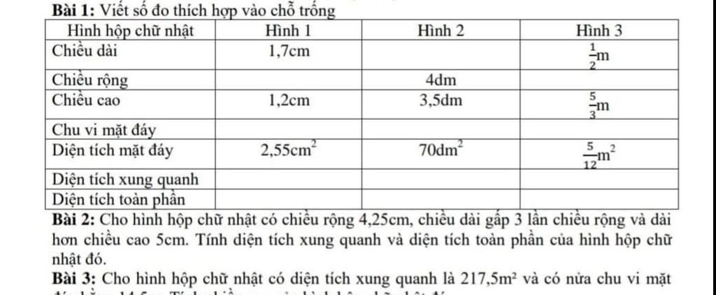 Diện tích toàn phần của hình hộp chữ nhật là: