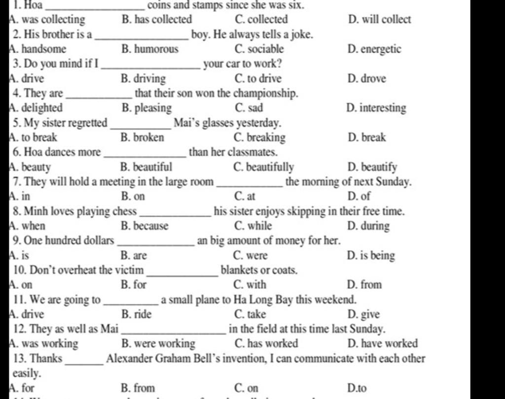 -> ta sẽ chọn humorous vì humorous có nghĩa là hài hước, vui tính